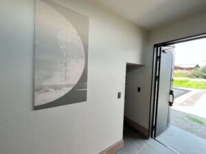 玄関には月の絵のパネルを張っております。