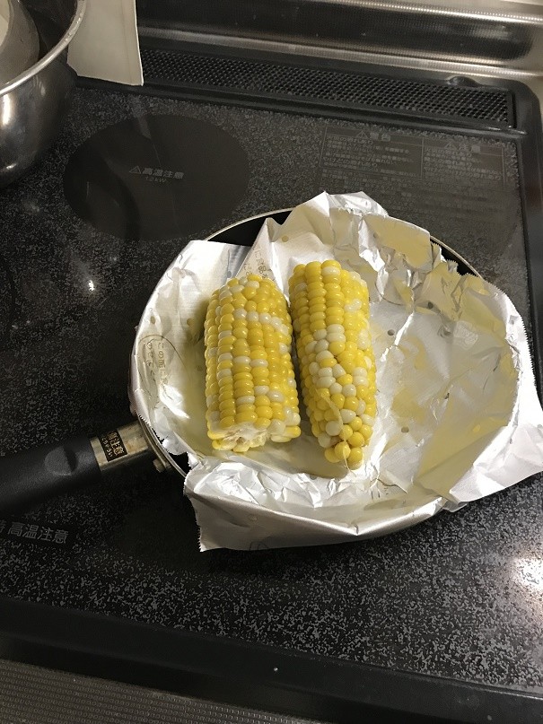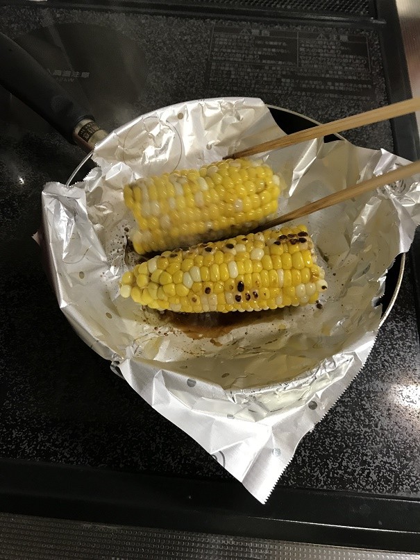 Sヌマ氏はトウモロコシを塩ゆで