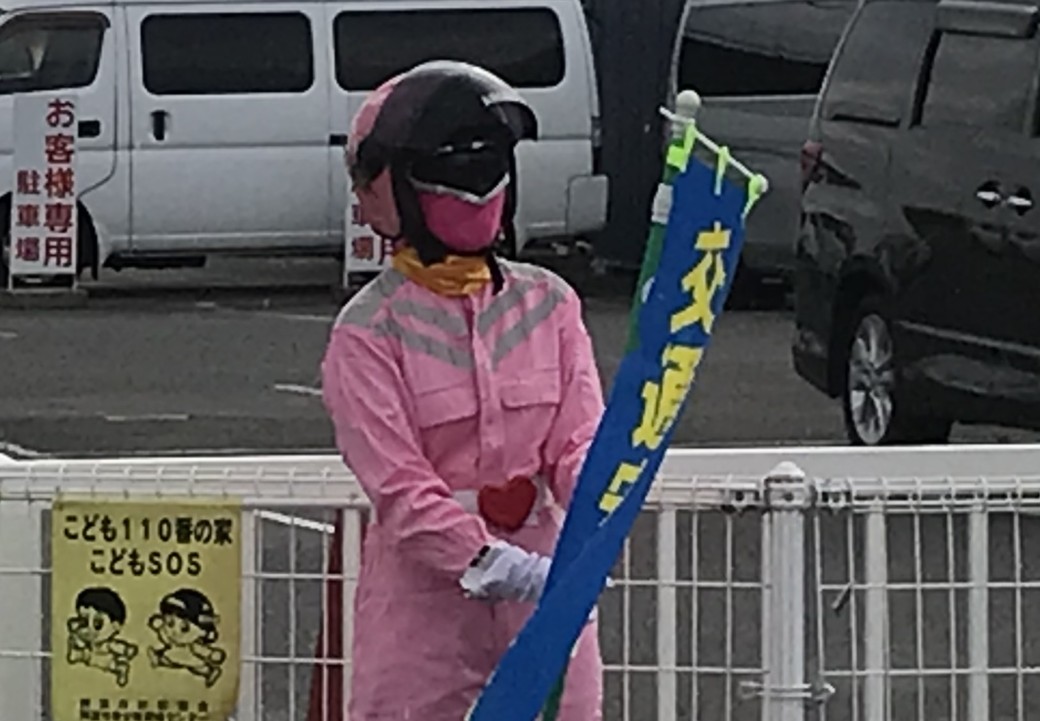 教習所出入口の前にて立哨です