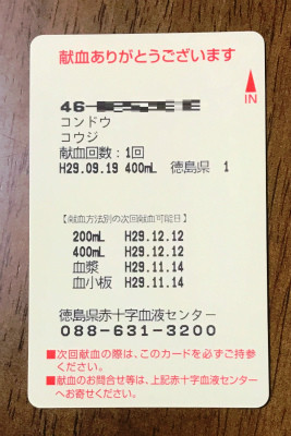 献血なんて高三の夏以来27年ぶりです